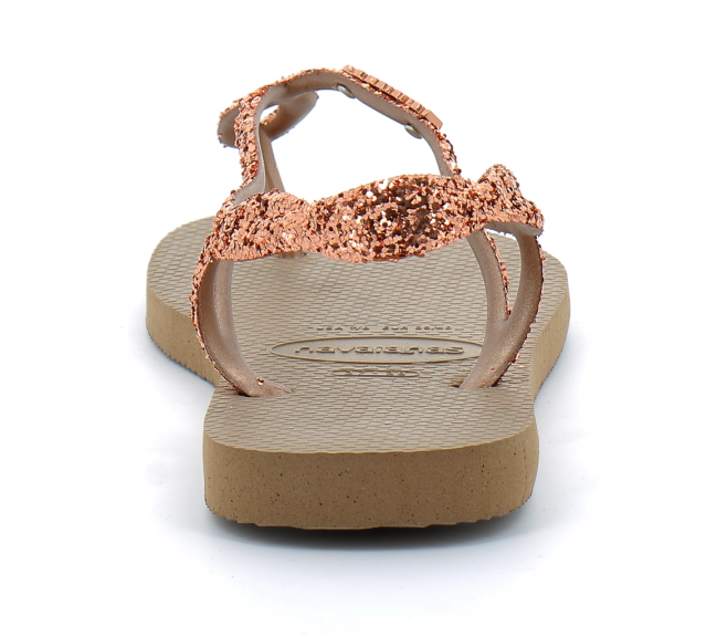 Avec les sandales Havaianas Luna Premium II, le look gagnera une touche de charme supplémentaire car la pièce offre des couleurs élégantes, dans des tons allant du rosé au café, et beaucoup de glamour, avec les sangles fines et brillantes dans le même ton que la sandale. La semelle des sandales est le classique des Havaianas, et les sangles apportent un beau contour à la forme des pieds. Brillance, glamour et élégance pour tes pieds ! CONSEILS Les Havaianas sont présentées en taille Brésilienne. Choisissez en pointure Brésilienne la même valeur que votre pointure européenn