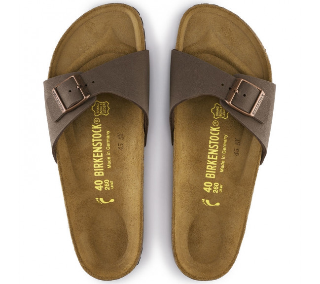 Aîné de la famille, le modèle BIRKENSTOCK Madrid est un vrai classique. Lancées il y a une cinquantaine d'années comme des « sandales de gymnastique », ces sandales à une bride épurées se sont peu à peu imposées comme un véritable compagnon de mode. Le dessus est en Birko-Flor®, une matière synthétique hypoallergénique et résistante. Largeur : Normale