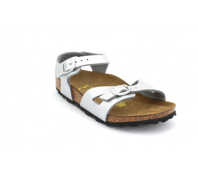 La BIRKENSTOCK Rio est une sandale sport élégante munie d’une bride de talon. Cette dernière garantit confort et bon maintien, quoi que vous fassiez. Cette sandale a été revisitée et arbore désormais un look métallisé original. Le film miroitant donne une nouvelle brillance à ce classique et rehaussera à coup sûr n'importe quelle tenue. La semelle extérieure au coloris assorti ainsi que les boucles complètent l’aspect raffiné de la chaussure. Le dessus est en Birko-Flor®, une matière synthétique hypoallergénique et résistante. Largeur : Etroite