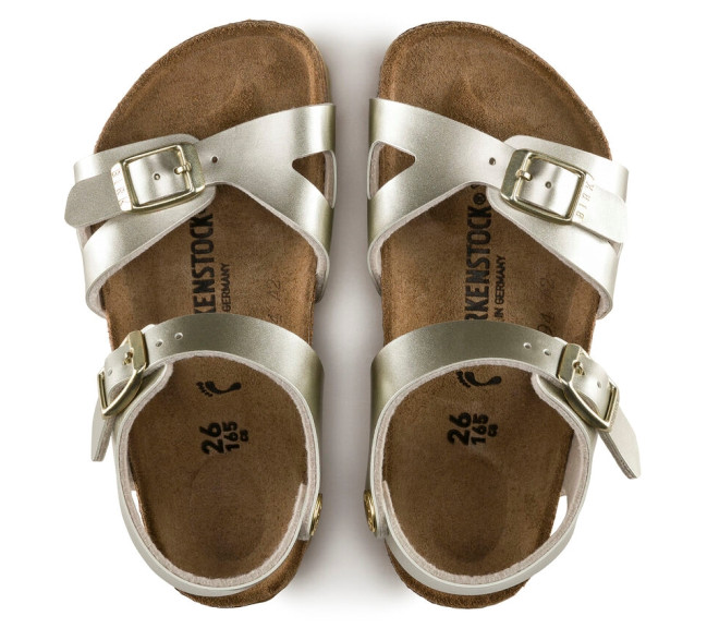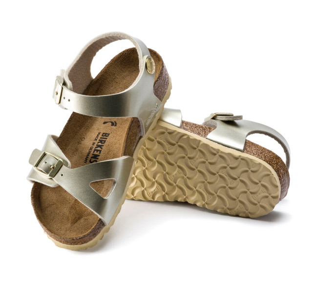 La BIRKENSTOCK Rio est une sandale sport élégante munie d’une bride de talon. Cette dernière garantit confort et bon maintien, quoi que vous fassiez. Cette sandale a été revisitée et arbore désormais un look métallisé original. Le film miroitant donne une nouvelle brillance à ce classique et rehaussera à coup sûr n'importe quelle tenue. La semelle extérieure au coloris assorti ainsi que les boucles complètent l’aspect raffiné de la chaussure. Le dessus est en Birko-Flor®, une matière synthétique hypoallergénique et résistante. Largeur : Etroite