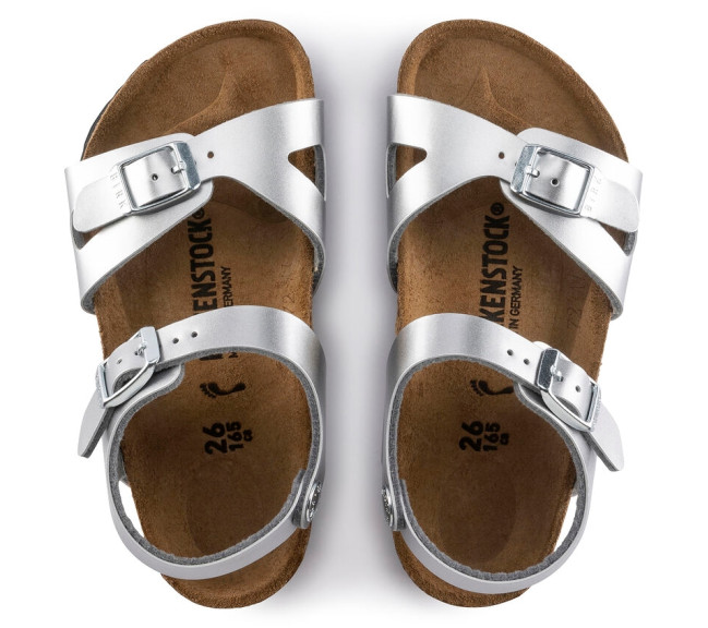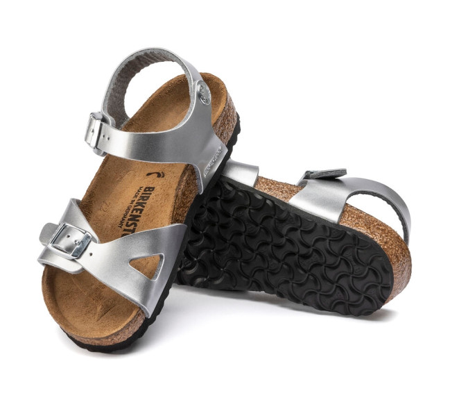 La BIRKENSTOCK Rio est une sandale sport élégante munie d’une bride de talon. Cette dernière garantit confort et bon maintien, quoi que vous fassiez. Cette sandale a été revisitée et arbore désormais un look métallisé original. Le film miroitant donne une nouvelle brillance à ce classique et rehaussera à coup sûr n'importe quelle tenue. La semelle extérieure au coloris assorti ainsi que les boucles complètent l’aspect raffiné de la chaussure. Le dessus est en Birko-Flor®, une matière synthétique hypoallergénique et résistante. Largeur : Etroite