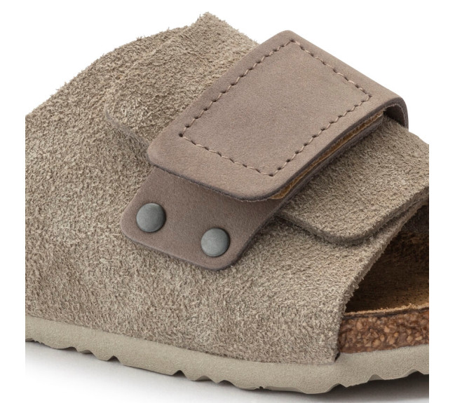 La Kyoto de BIRKENSTOCK s'inspire en toute décontraction du grand classique Zürich, et séduit par son design épuré et compact doté d'une boucle réglable. Celle-ci garantit un maintien optimal et est complétée par deux rivets décoratifs. Sa tige a été confectionnée dans un cuir velours particulièrement doux qui drape le pied comme une seconde peau, associé à du cuir nubuck haut de gamme. Largeur : Etroite