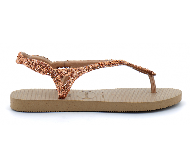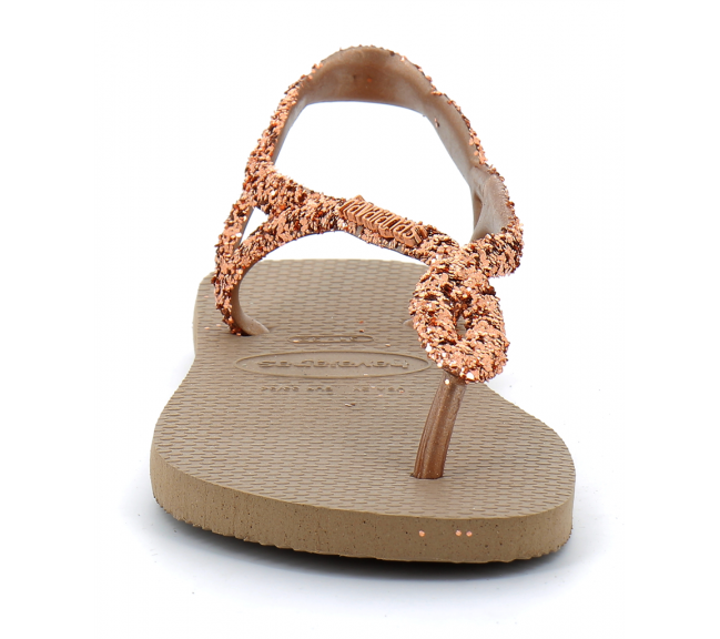 Avec les sandales Havaianas Luna Premium II, le look gagnera une touche de charme supplémentaire car la pièce offre des couleurs élégantes, dans des tons allant du rosé au café, et beaucoup de glamour, avec les sangles fines et brillantes dans le même ton que la sandale. La semelle des sandales est le classique des Havaianas, et les sangles apportent un beau contour à la forme des pieds. Brillance, glamour et élégance pour tes pieds ! CONSEILS Les Havaianas sont présentées en taille Brésilienne. Choisissez en pointure Brésilienne la même valeur que votre pointure européenne